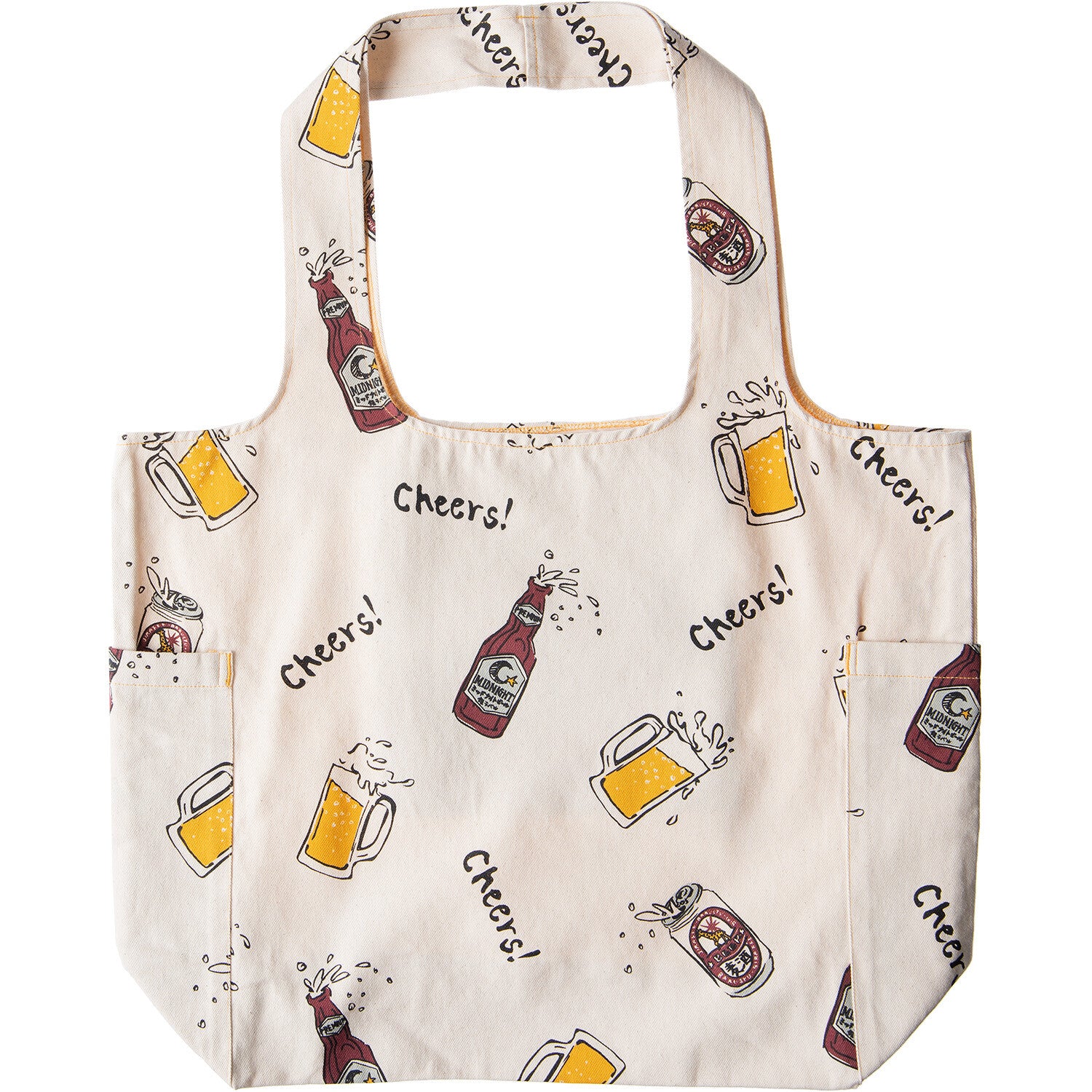 啤酒圖案市集帆布袋|POP 風格 × 輕便環保袋|48cm 大容量購物包