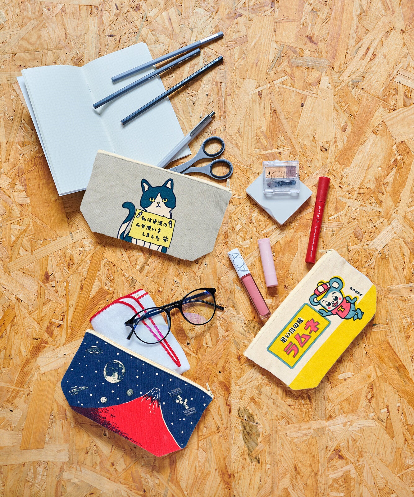 - 罪深貓設計:這款幽默療癒的收納包,以「ツミブカネコ(罪深貓)」為主角,表情搞怪、彷彿剛做完壞事又裝沒事,讓人看了會心一笑!
